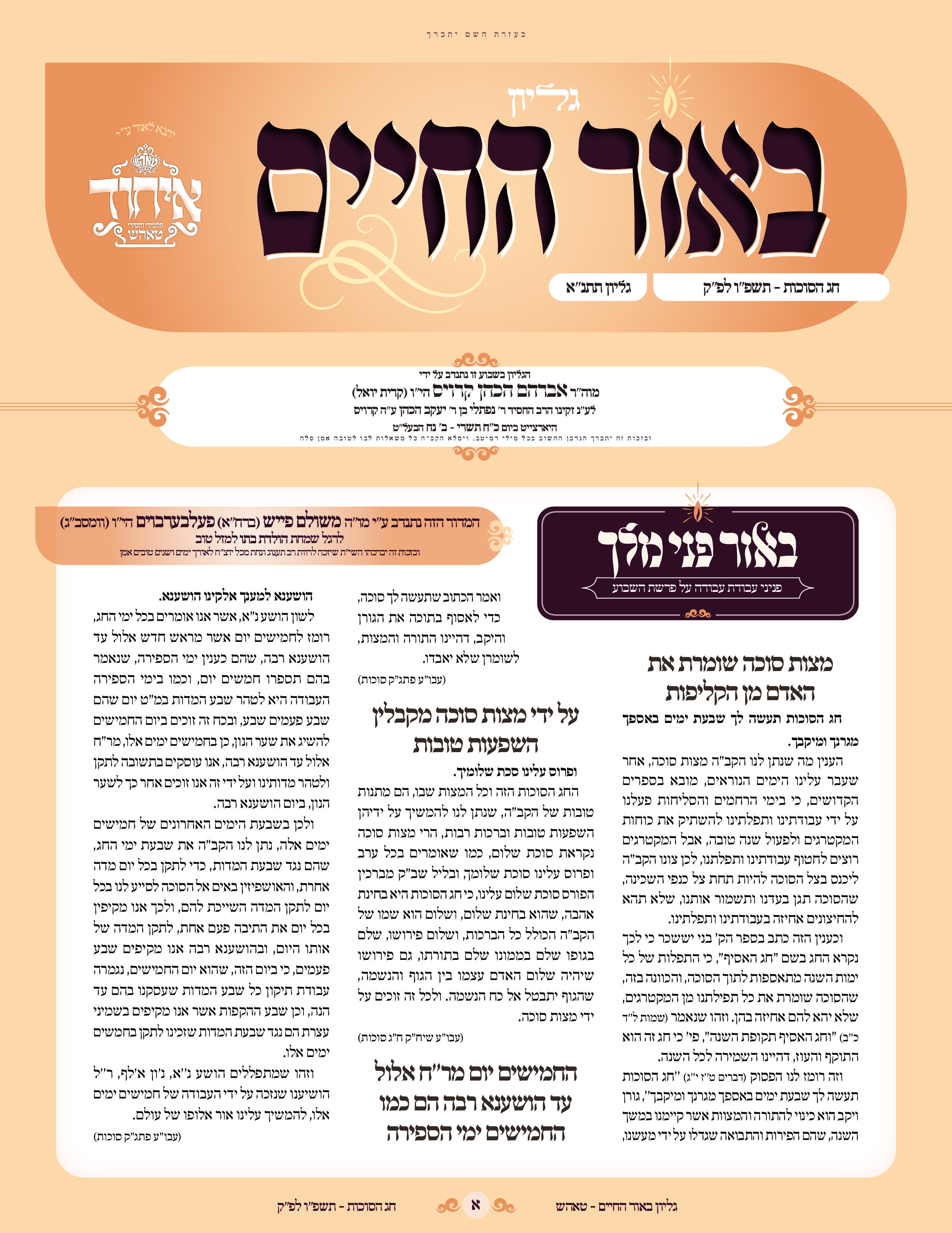 גליון באור החיים - רייכע איבערבליק אויף די פארגאנגענע יאר - גליון מורחב לכבוד חג הסוכות תשפ"ו #1026